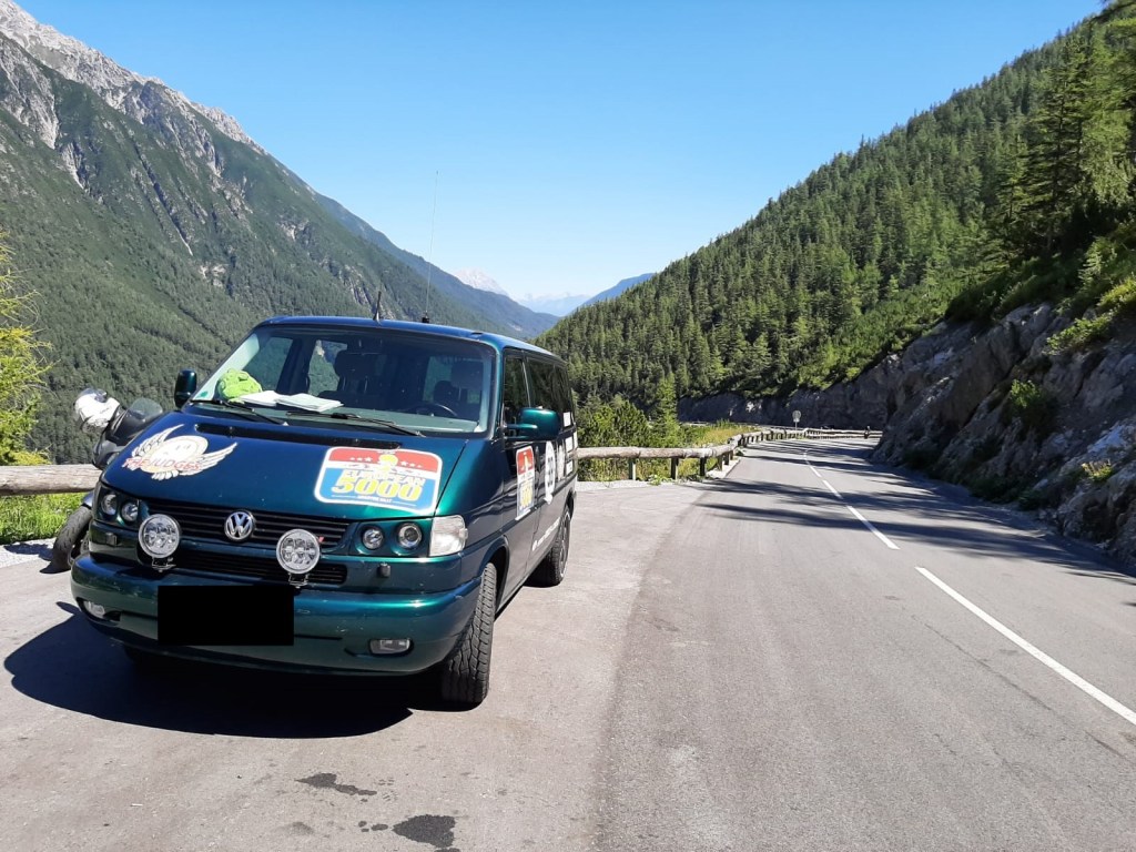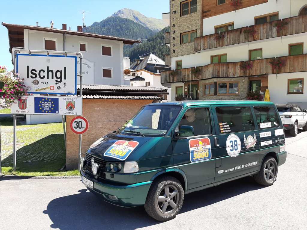 Gestartet sind wir in Neulingen (Standort des „Renn-Frosch“) Richtung Osten. Um den T4 auf Temperatur zu bekommen, ging es erstmal auf die A8 Richtung München und anschließend auf die A7 Richtung Kempten, mit dem Ziel Oberallgäuer Alpen über den Rietbergpass. Dann ging es in die Höhe, um genau zu sein 1407 Meter. Danach Richtung Silvretta Hochalpenstraße.