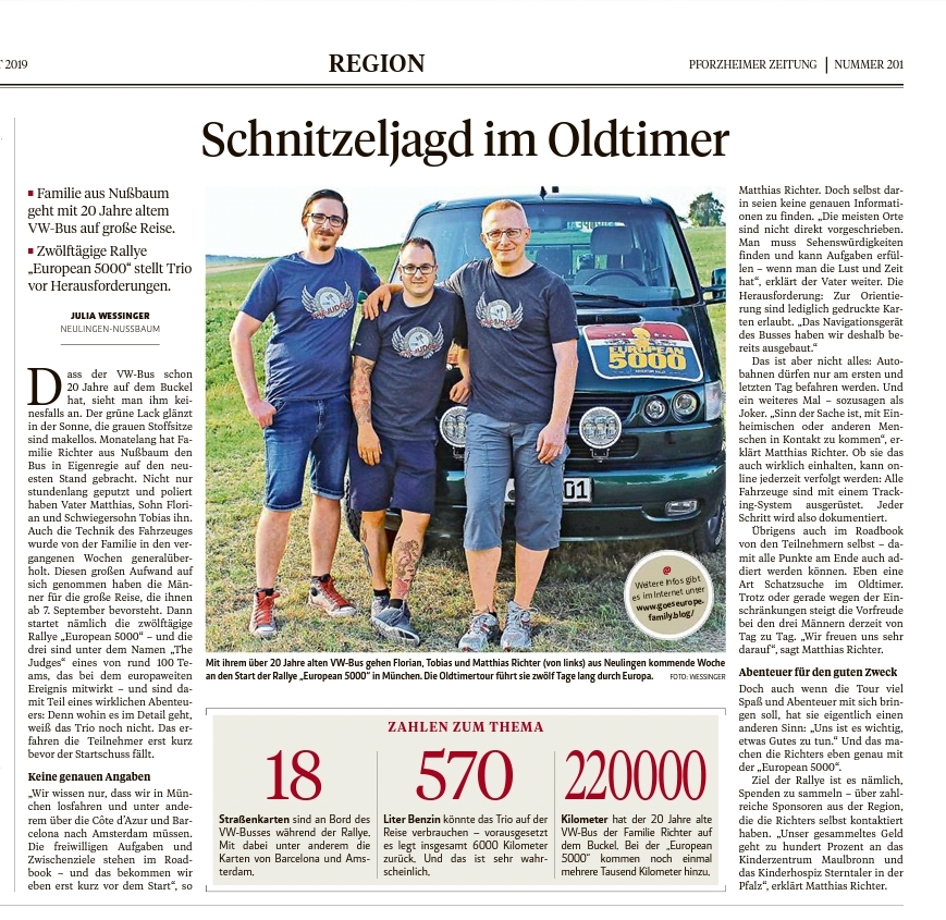 Wir haben uns sehr gefreut, als die Pforzheimer Zeitung auf uns zukam und für einen Artikel in ihrer Zeitung angefragt hat. Natürlich haben wir das Angebot angenommen und uns für ein weiteres Interview mit der Presse getroffen. Wir bedanken uns bei der Pforzheimer Zeitung, insbesondere bei Redakteurin Julia Wessinger, für den tollen Artikel und freuen uns auf die Berichterstattung von unterwegs. 🙂
