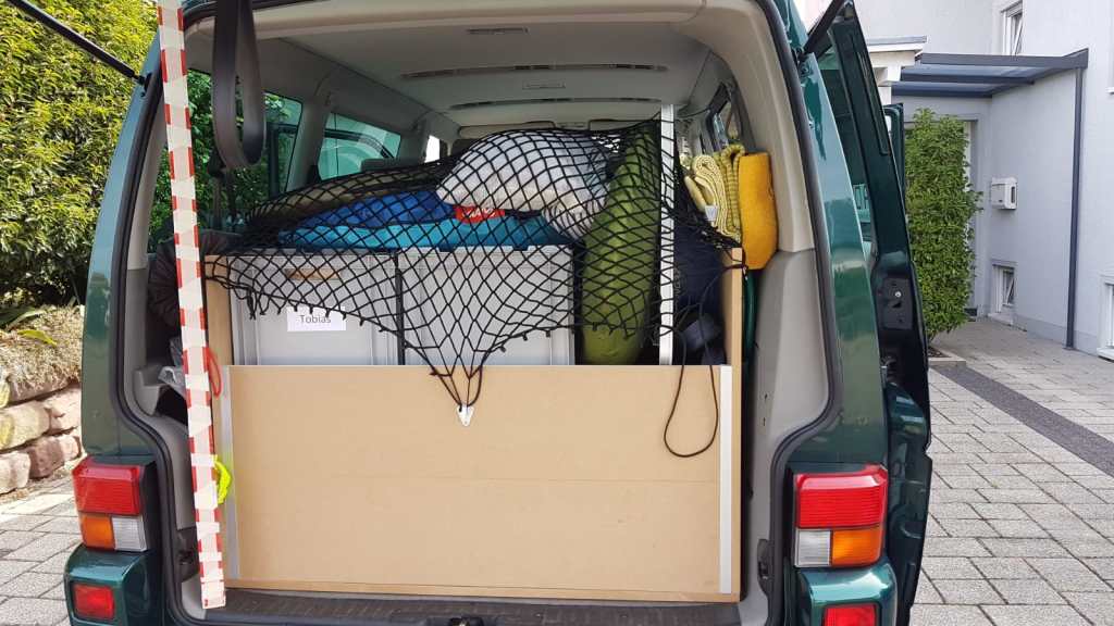 Schön wenn ein Plan aufgeht. Wie ihr ja gelesen habt, haben wir unserem „Renn-Frosch“ eine Holzkonstruktion verpasst. Die Freude war groß bei dem Probeladen unserer Kisten. Aber seht selbst, wie genau alles passt. 🙂