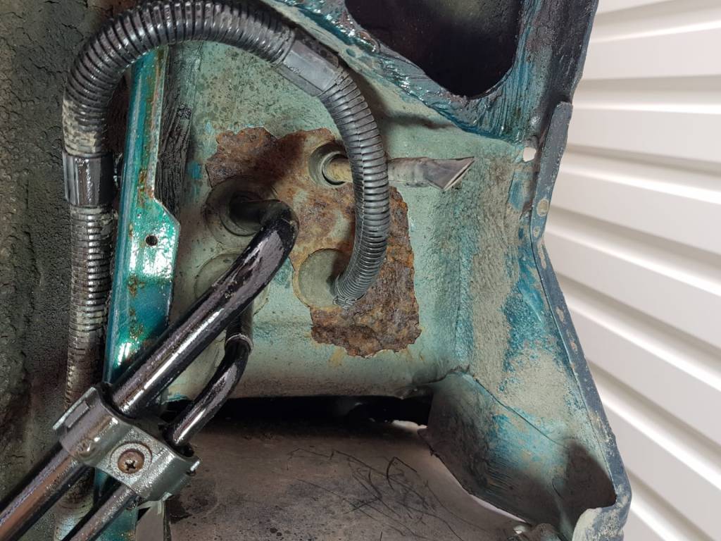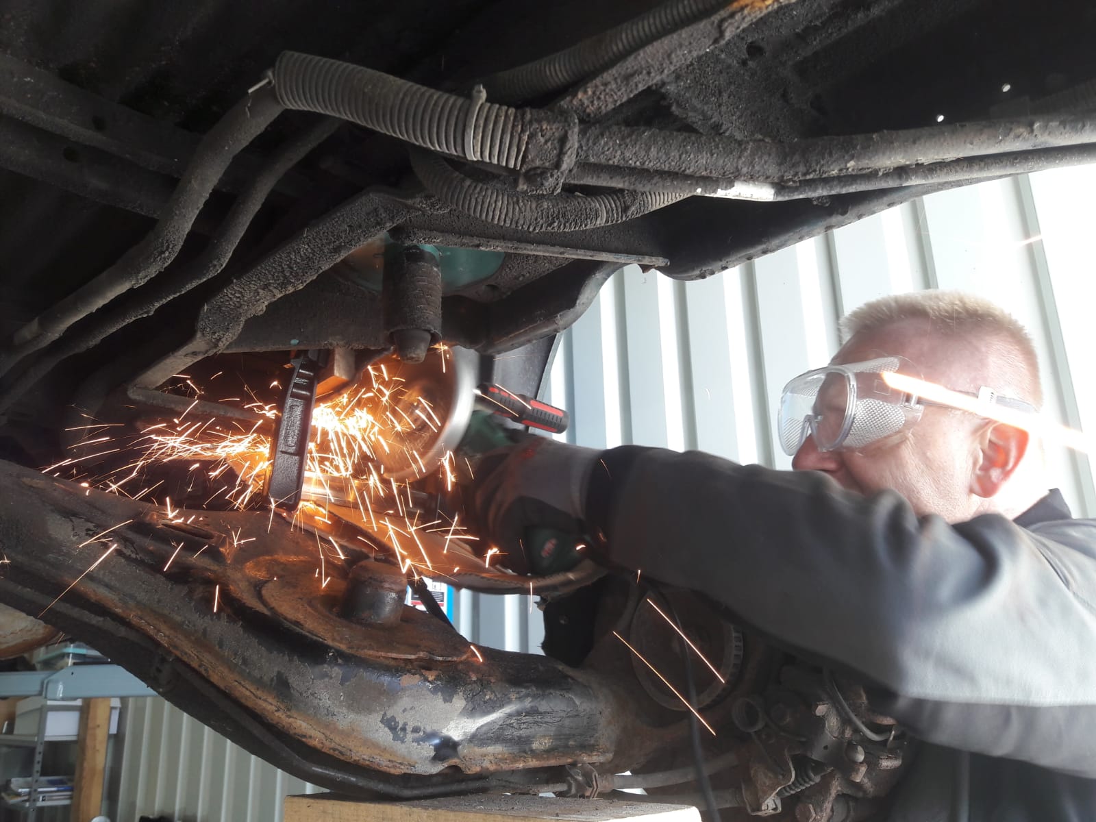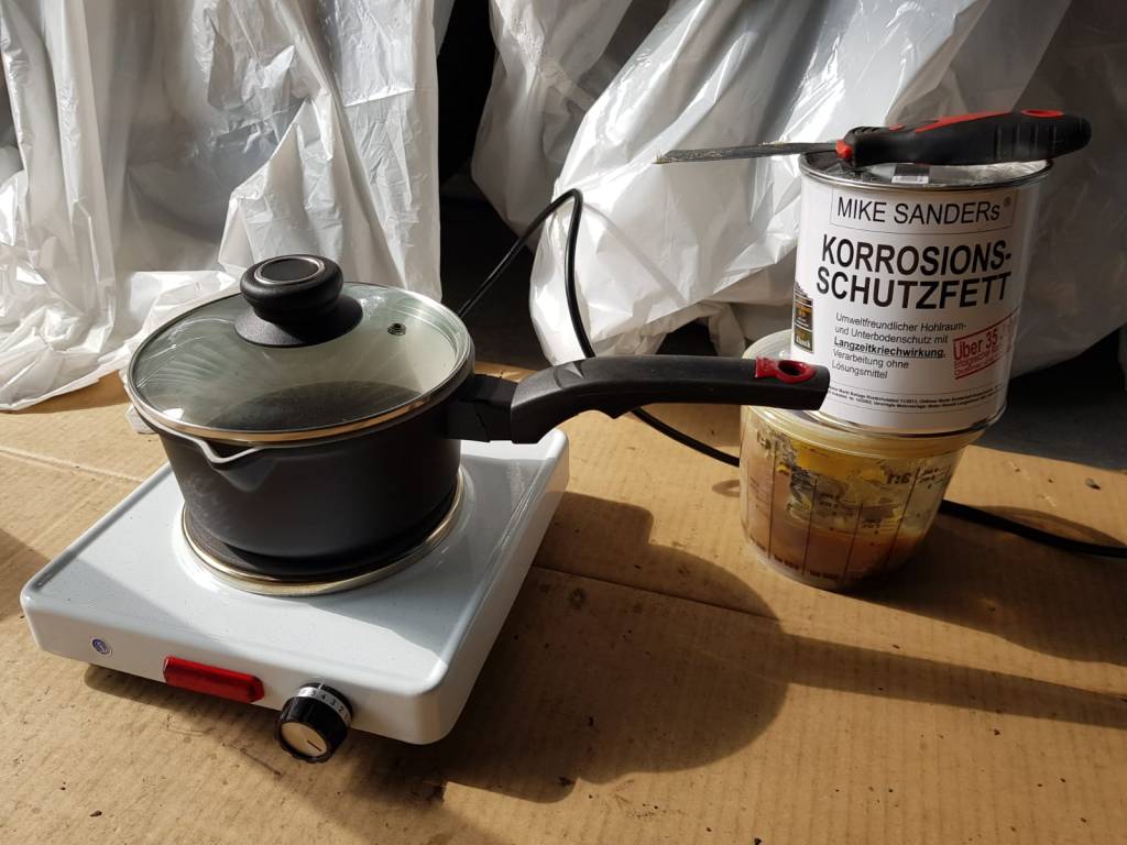 • Rostige Stellen am Unterboden geschliffen und mit Rostumwandler behandelt