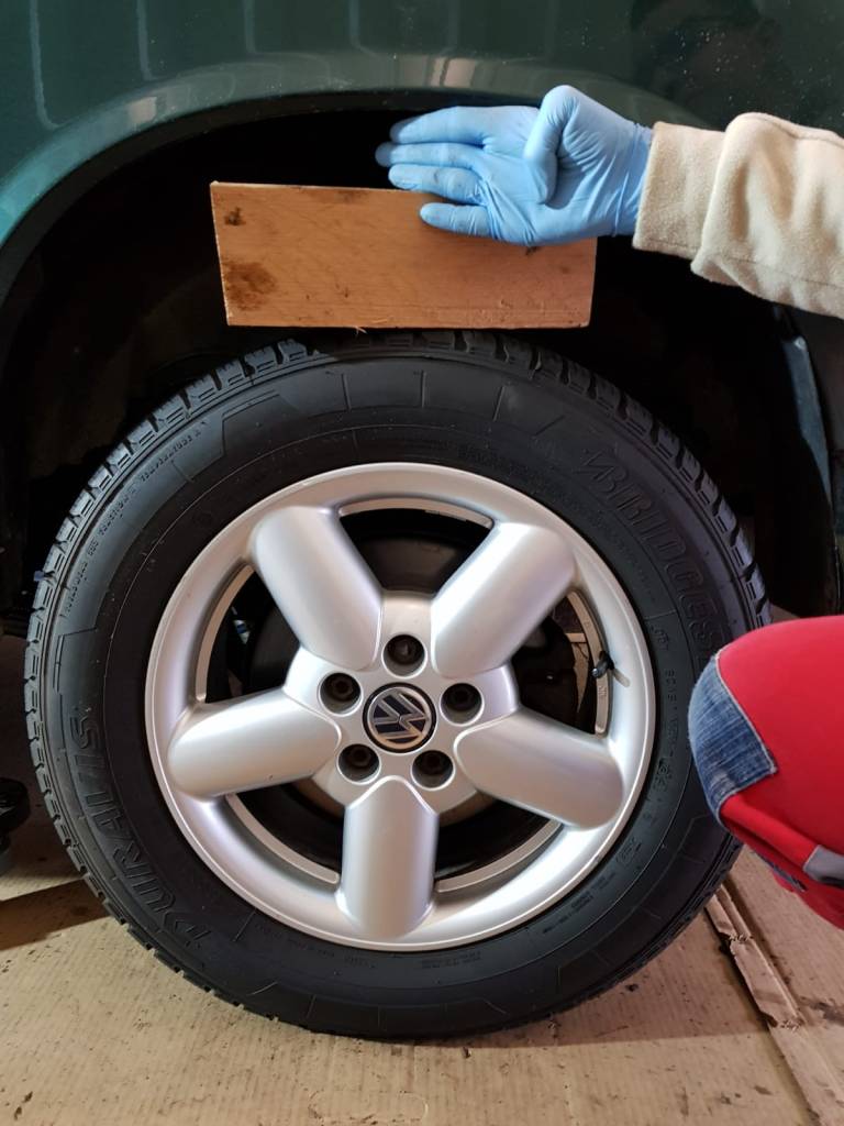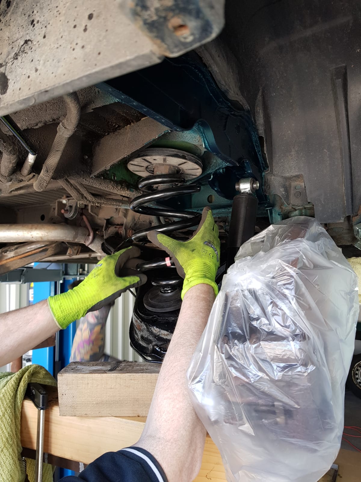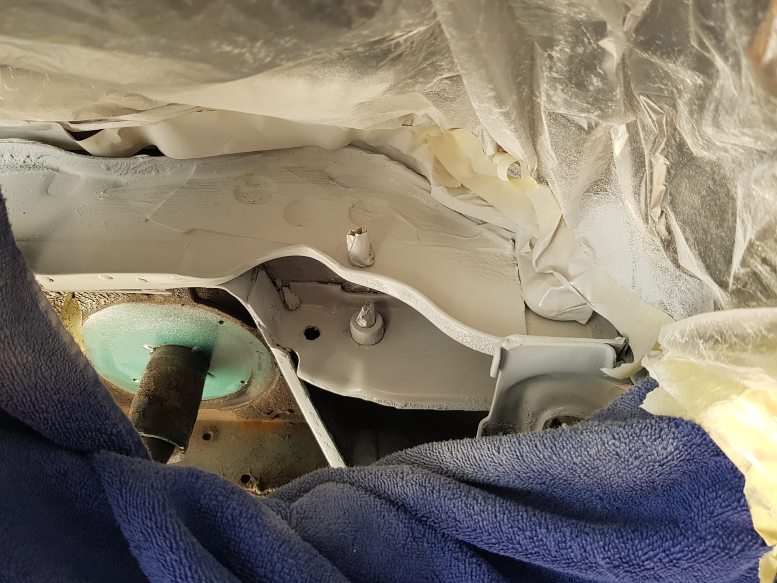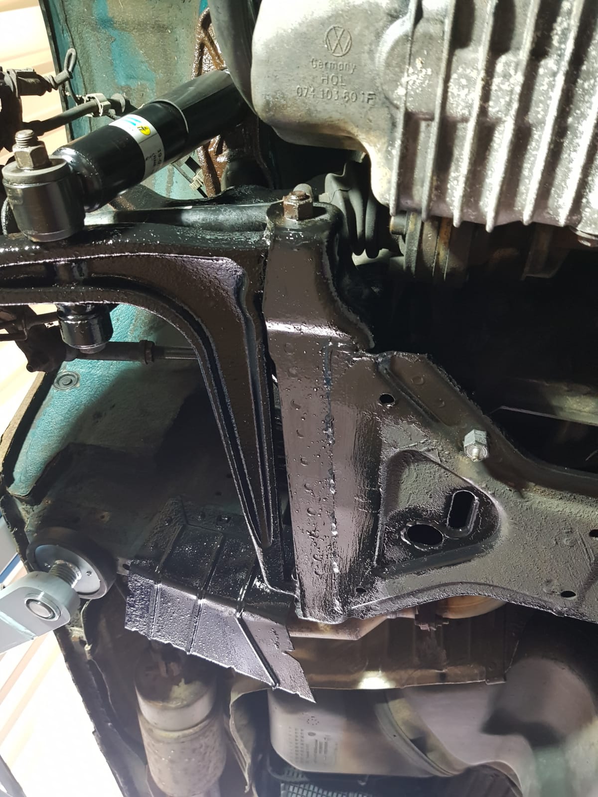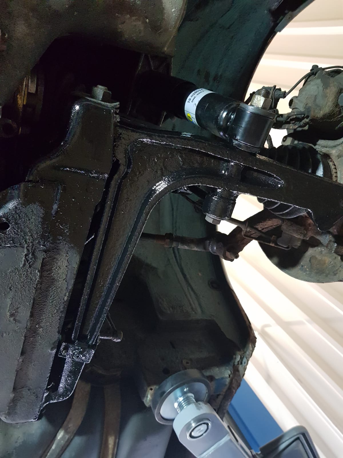 • Linker Achsschenkel sowie hinterer Stoßdämpfer entrostet,geschliffen und mit Rostumwandler behandelt